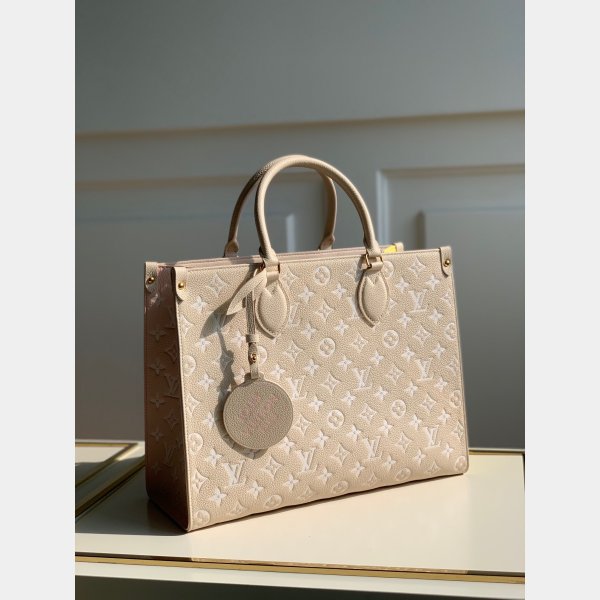 Louis Vuitton Kopie Beige/Pink/Gelb Onthego MM Monogram Emprainte Leder M46128