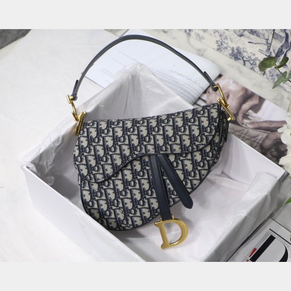 Dior -Sattel Mode schräg Jacquard Replik Taschen Marine Blau